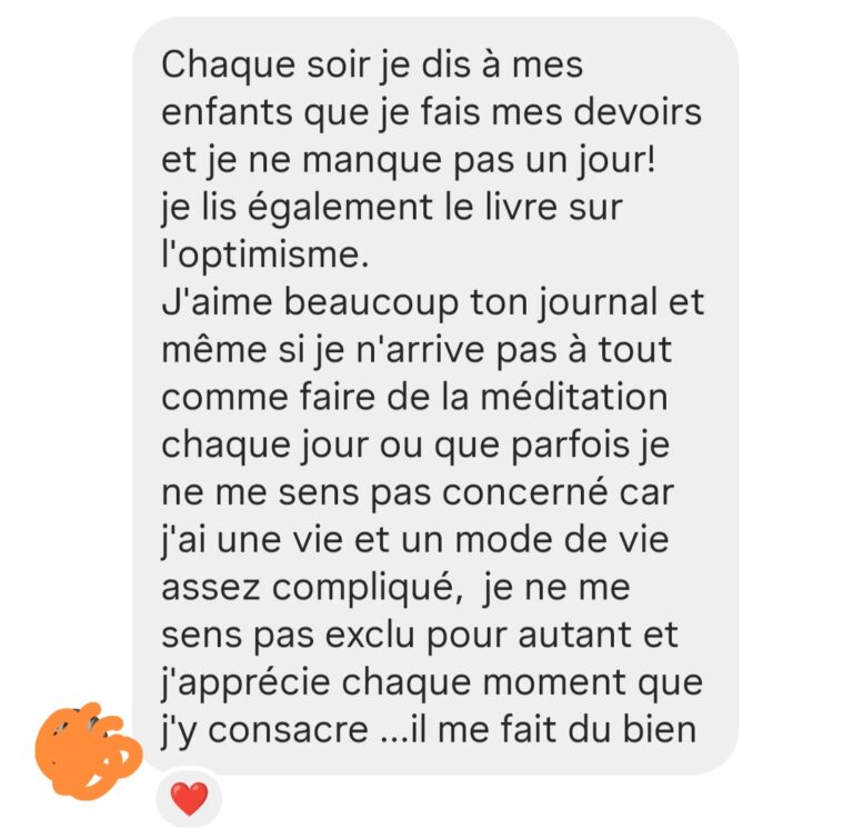 - Au fil des jours, tu constates un changement profond dans ton état d’esprit et ta joie de vivre.