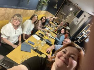 - Nous clôturons généralement la soirée par une photo de groupe (si certaines personnes préfèrent ne pas apparaître sur les réseaux sociaux, je m’engage à flouter leur visage avec un sticker).